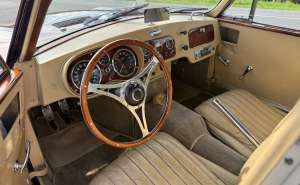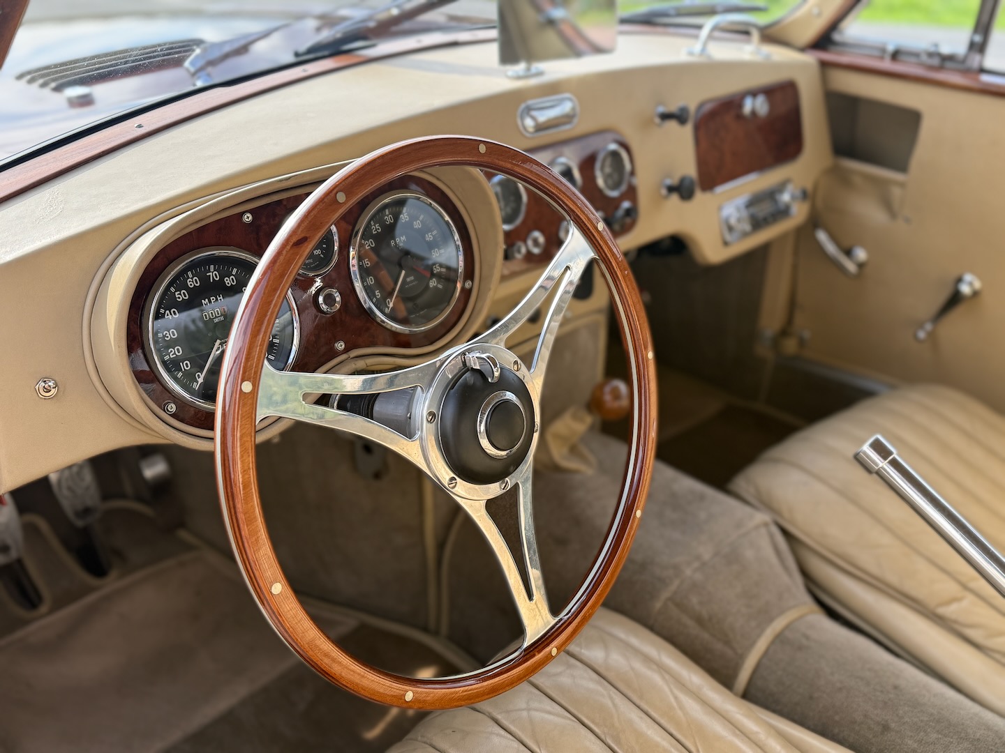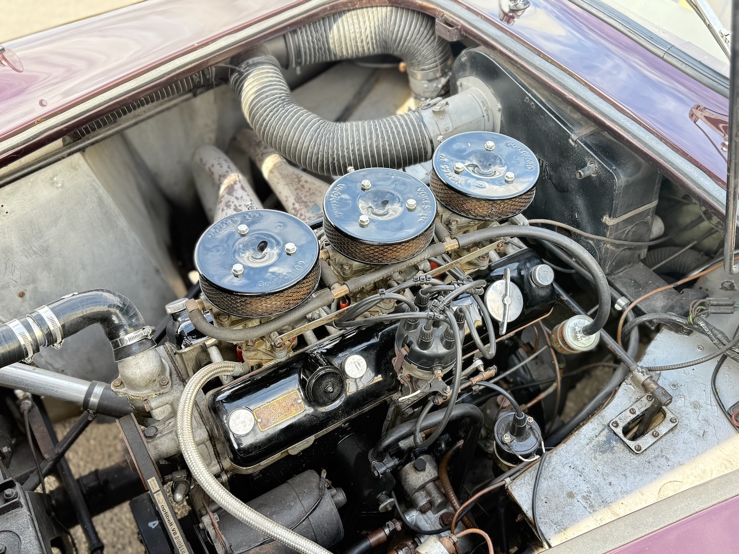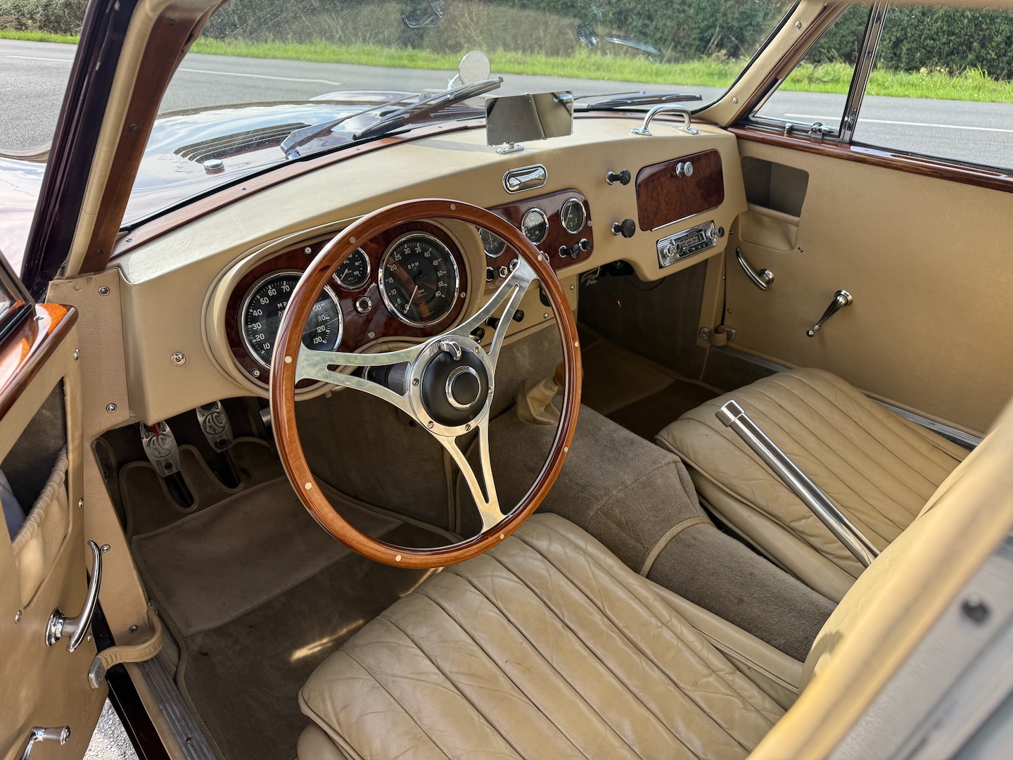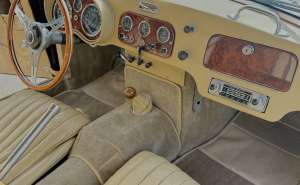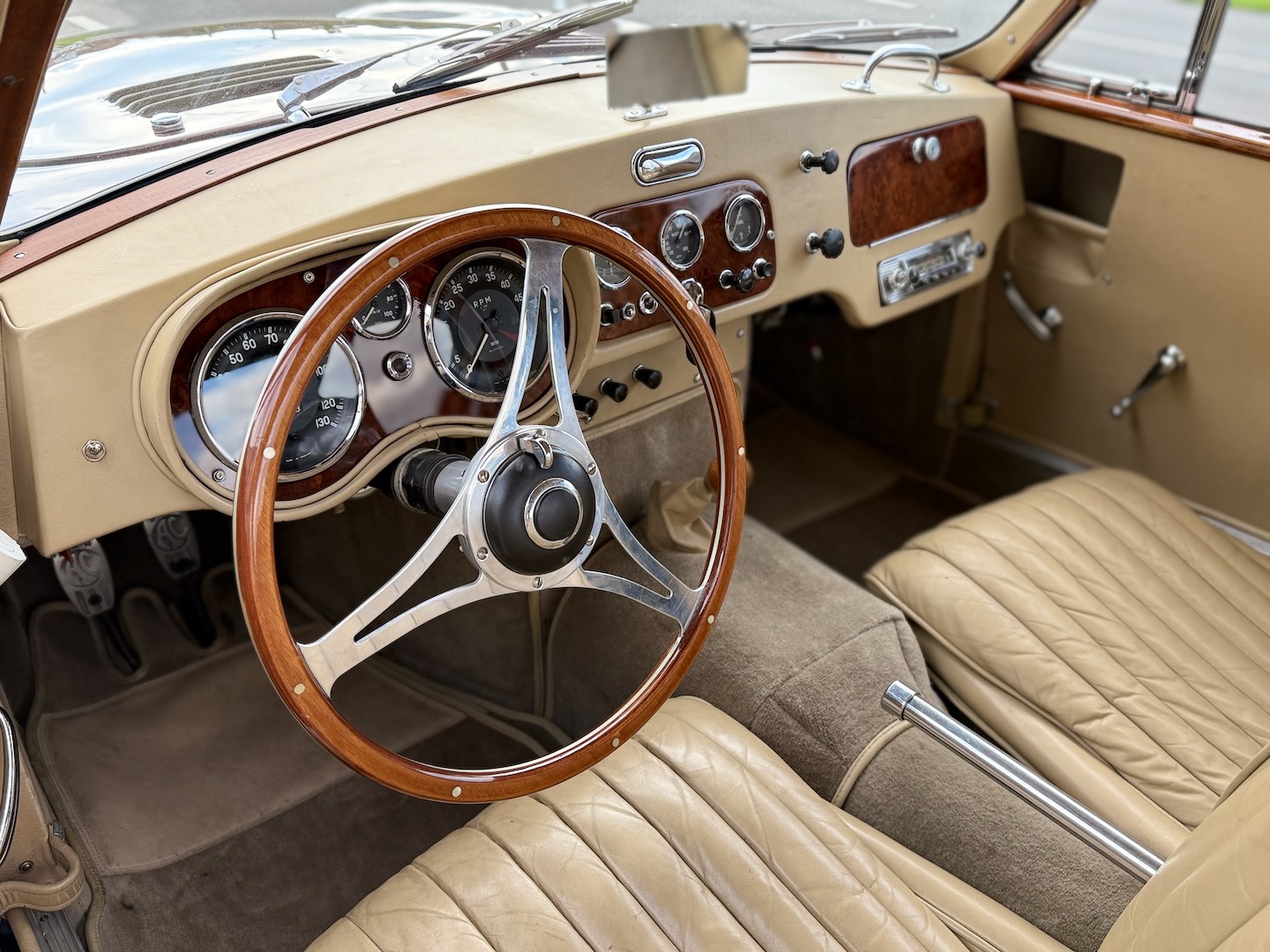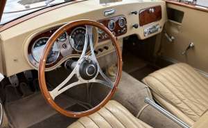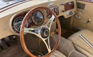 L’exemplaire proposé ici, châssis AEX 661, a quitté l’usine le 21 avril 1958 dans sa teinte d’origine Iris Red avec l’intérieur Grey et équipée du moteur CL-2356-W.