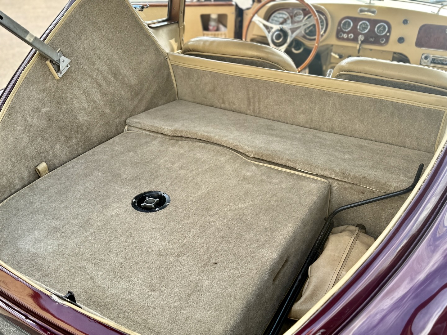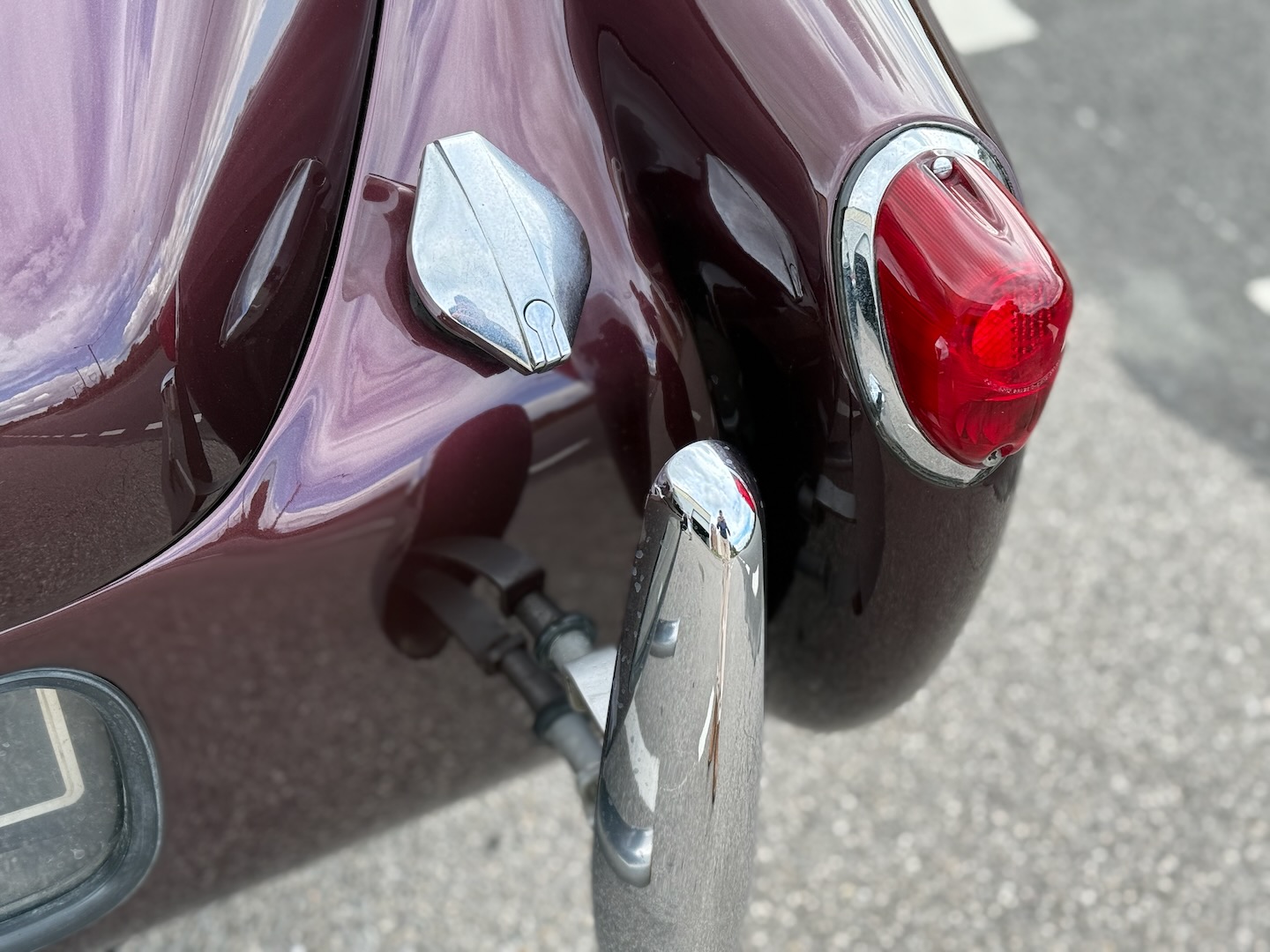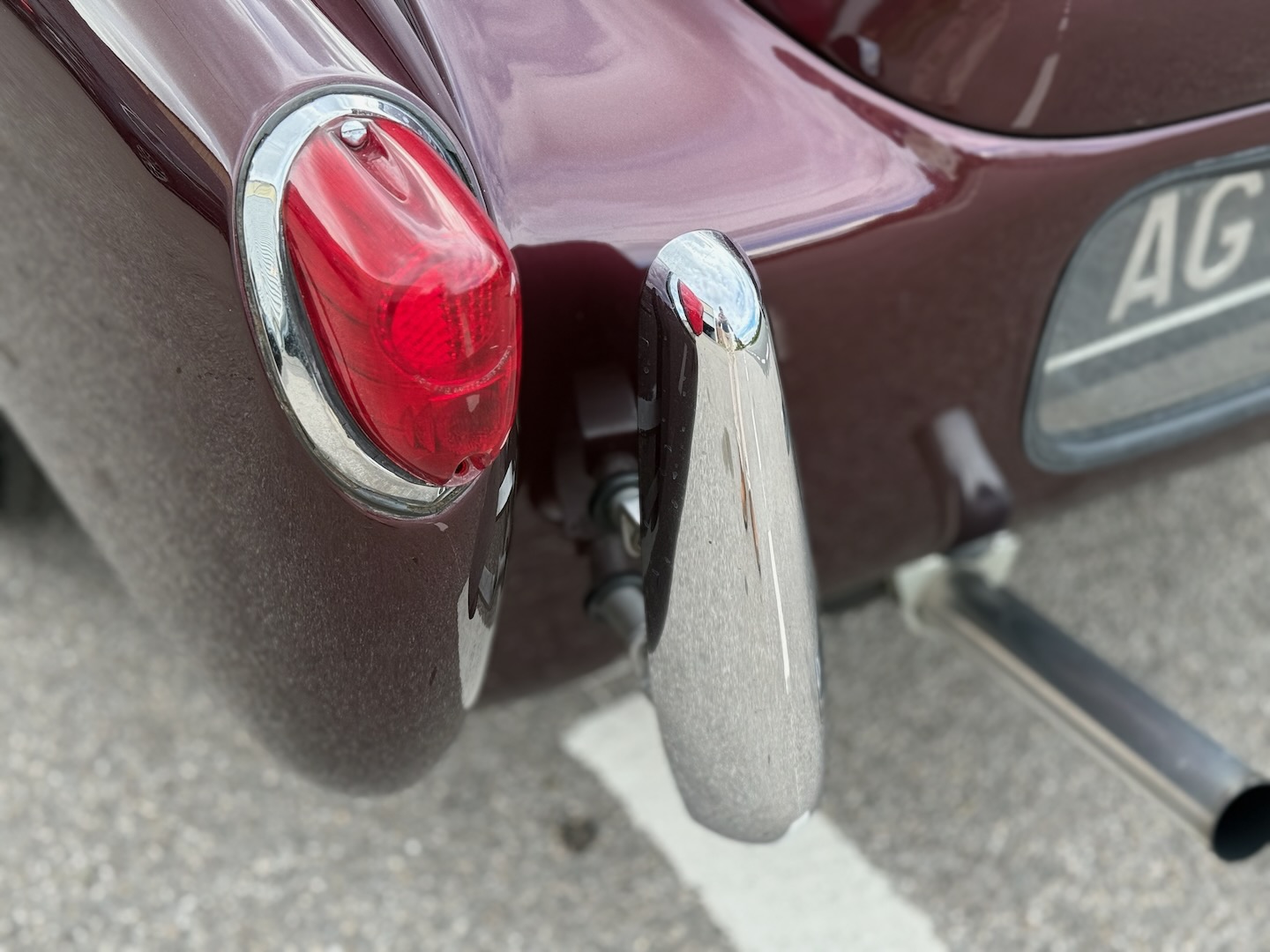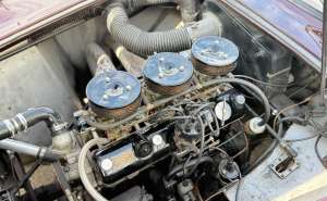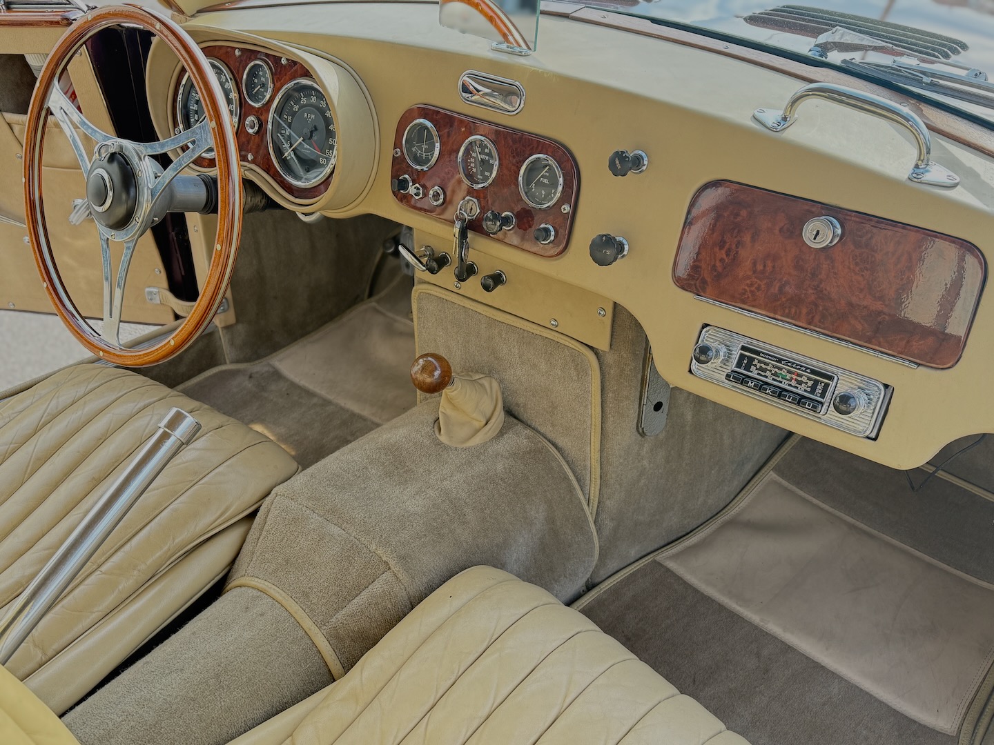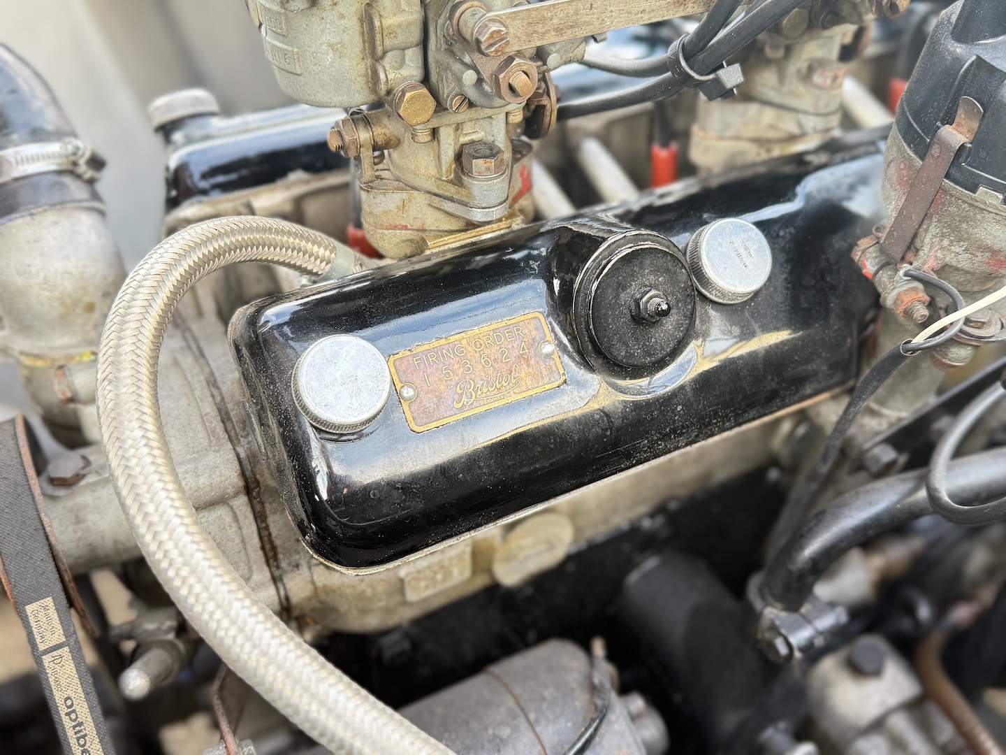 L’exemplaire proposé ici, châssis AEX 661, a quitté l’usine le 21 avril 1958 dans sa teinte d’origine Iris Red avec l’intérieur Grey et équipée du moteur CL-2356-W.